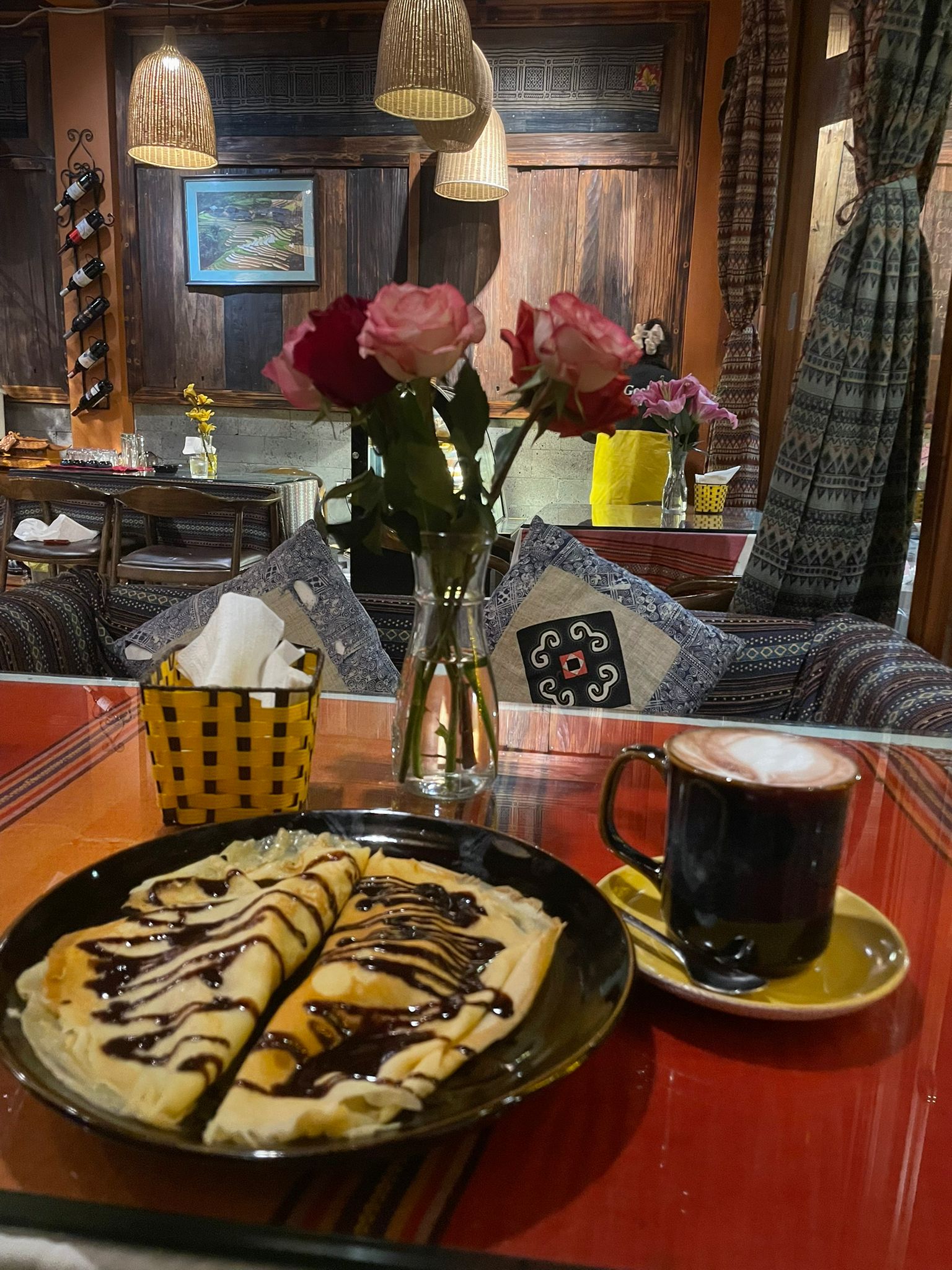 Le dimanche matin, nous avons libéré la chambre à 10h avant de nous diriger vers le village de Cat Cat, que nous avions également beaucoup vu sur les réseaux sociaux. Sur le chemin, nous nous sommes arrêtées au White Cloud Café & Restaurant pour le petit-déjeuner. Nous avons particulièrement apprécié la qualité des plats ainsi que la vue exceptionnelle sur les paysages de Sapa. Prendre le petit-déjeuner sur une terrasse en hauteur, face aux rizières et aux montagnes, a été une expérience magique et très dépaysante, d’autant plus que le beau temps était au rendez-vous.