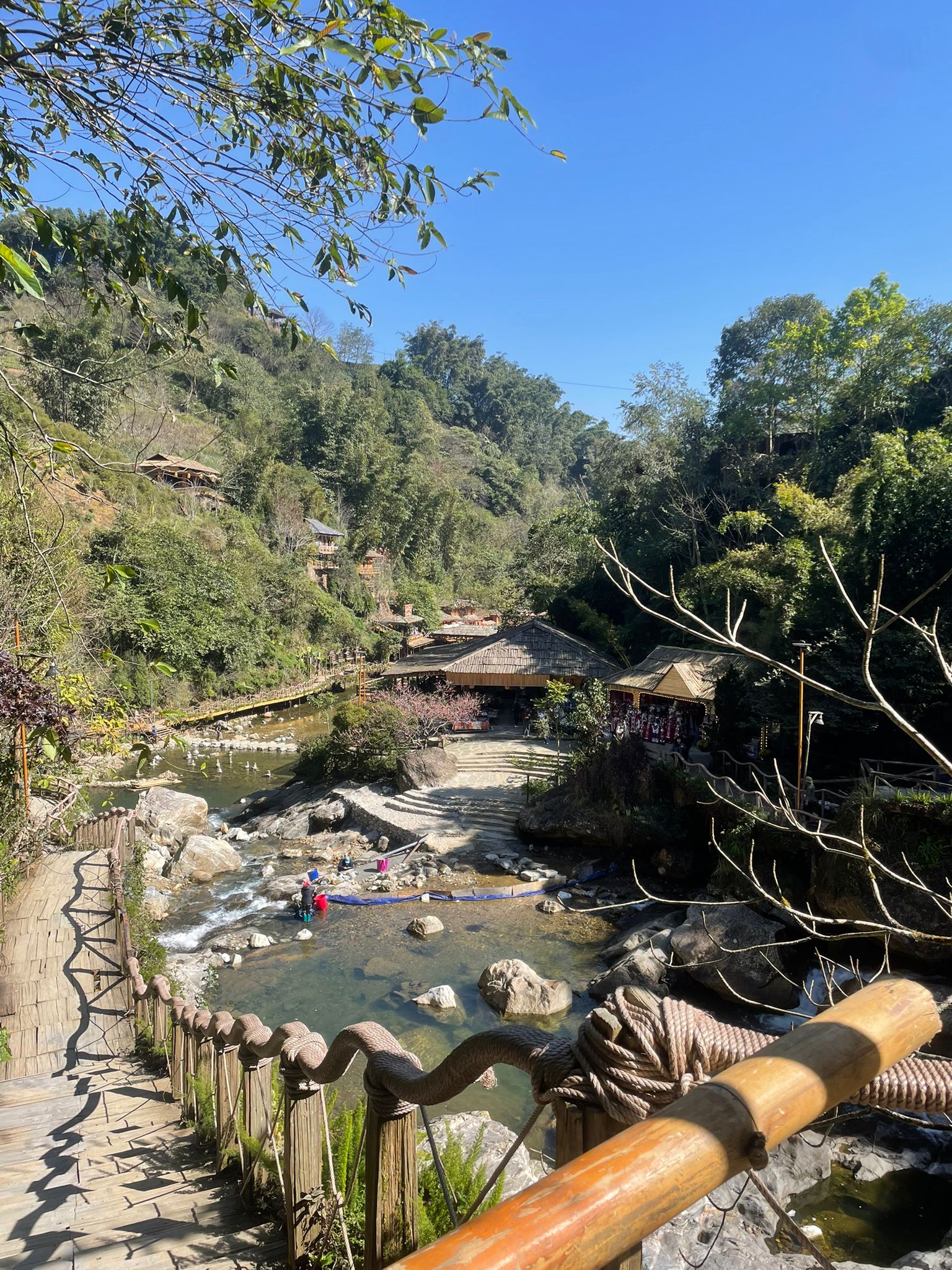 À notre arrivée dans le charmant village de Cat Cat (l’entrée est payante, environ 150 000 VND), nous avons vécu une expérience unique et authentique. Le village est organisé autour d’un ruisseau et offre un décor spectaculaire, notamment grâce à ses nombreuses cascades. En déambulant dans les ruelles étroites, entre habitations traditionnelles, boutiques et points de vue magnifiques, nous avons pleinement apprécié l’atmosphère du lieu. Dès l’entrée du village, de nombreuses boutiques proposent des tenues traditionnelles pour les hommes, les femmes et les enfants, avec également la possibilité de se faire maquiller afin de prendre de superbes photos dans ce cadre exceptionnel.