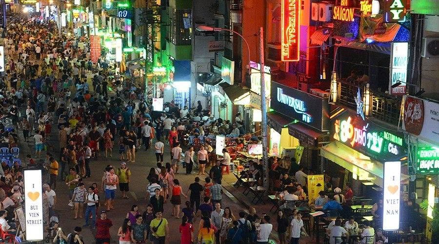 Poursuivez votre balade en admirant la vue panoramique sur la ville depuis la rivière Saigon. Le quartier de Tay Balo, animé et convivial, est idéal pour une promenade nocturne. Venez vous immerger dans l'ambiance festive, manger, boire un verre et faire des rencontres. Savourez un pho, notre plat de nouilles préféré. Retour à votre hôtel après 3 heures d'excursion.