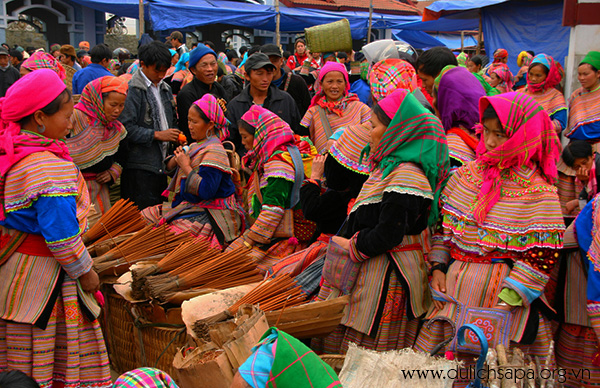 Chaque dimanche matin, les Hmong fleuris, les Dao rouges, les Tay, les Nung et les Phu La se retrouvent ici, formant un véritable festival de couleurs et de vie.