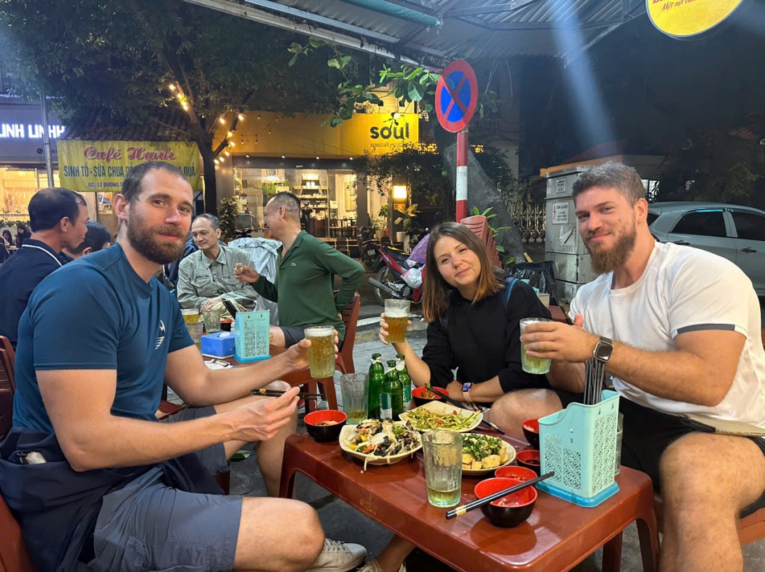 Continuez vers un autre lieu populaire où les Hanoïens se réunissent pour déguster de la bière fraîche et s'imprégner pleinement de la culture locale de la boisson. Rendez-vous ensuite dans la rue Hang Da pour savourer le traditionnel Banh Mi, un sandwich vietnamien très apprécié, tout en dégustant une bière de Saigon pour satisfaire vos envies. Enfin, terminez votre visite dans l'emblématique Rue des Trains, où vous pourrez vous détendre avec une bière de Hanoi rafraîchissante tout en vous imprégnant de l'atmosphère unique du passage des trains.