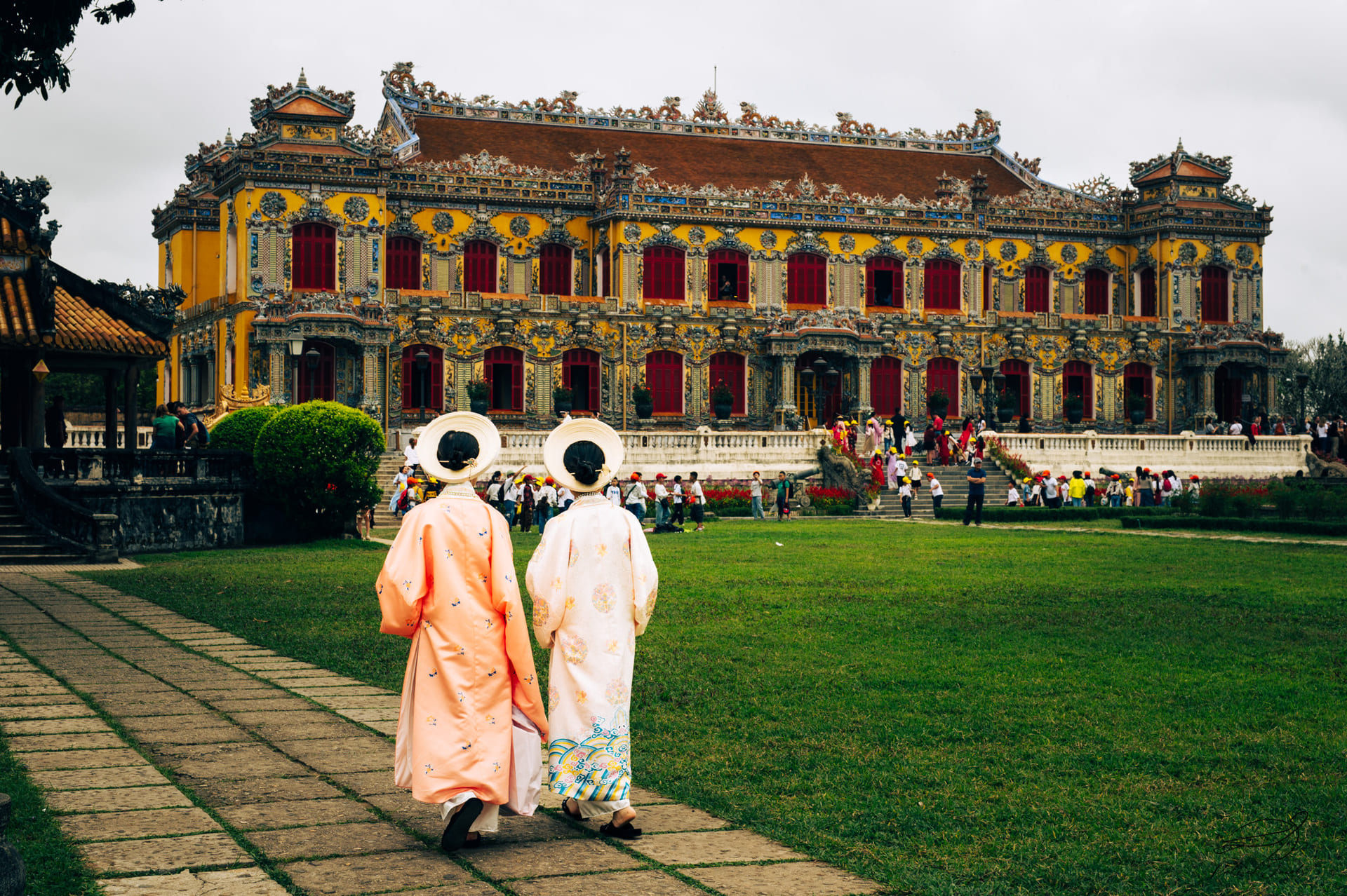 - Le tombeau de Khải Định, construit pour Khải Định, douzième empereur de la dynastie Nguyễn, présente un mélange d'architecture vietnamienne et de styles occidentaux.