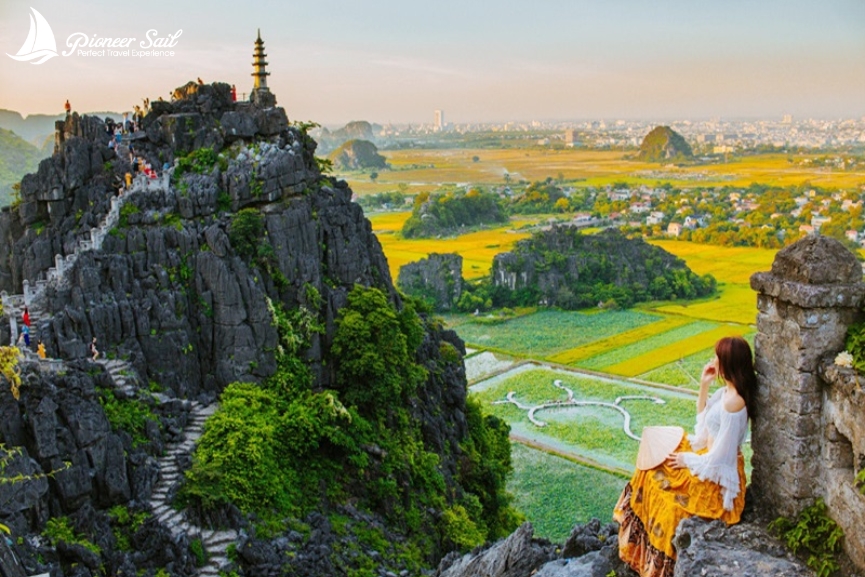 15h30 : Retour au bus-navette puis départ pour la grotte de Mua (grotte de la Danse). Après avoir gravi près de 500 marches, vous atteindrez le sommet de la montagne du Dragon Couché et profiterez d’une vue panoramique imprenable sur Tam Coc.