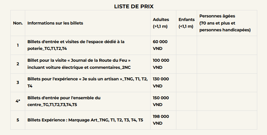 Prix des factures d'entrées en VND (source https://ceramuseum.com/ve-va-phi.html) :